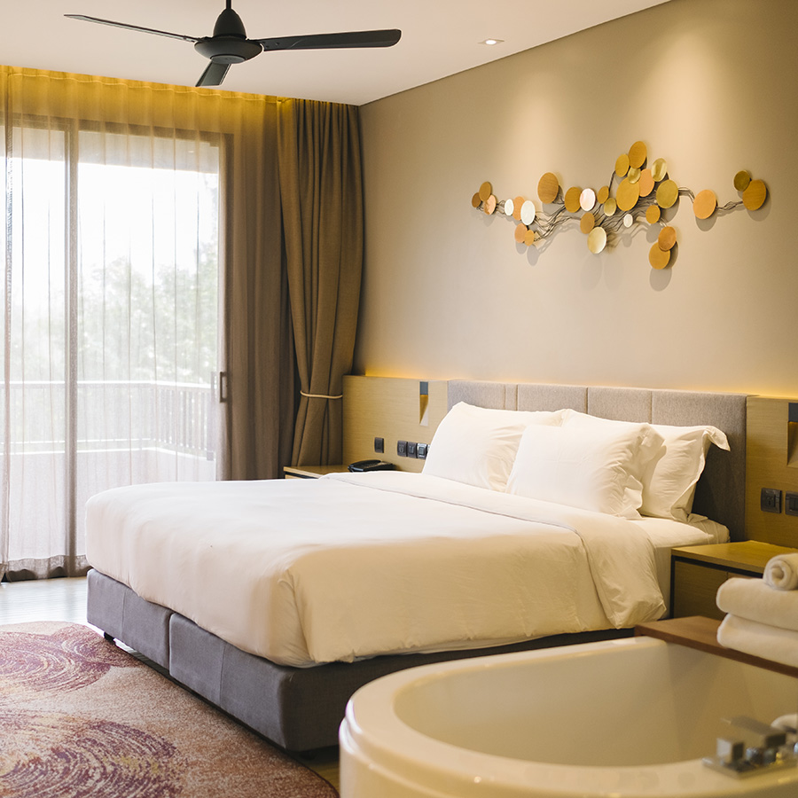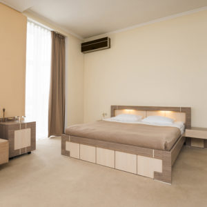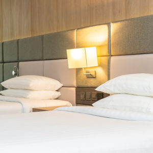 Quartos amplos com ar condicionado, frigobar, TV a cabo, telefone e internet.